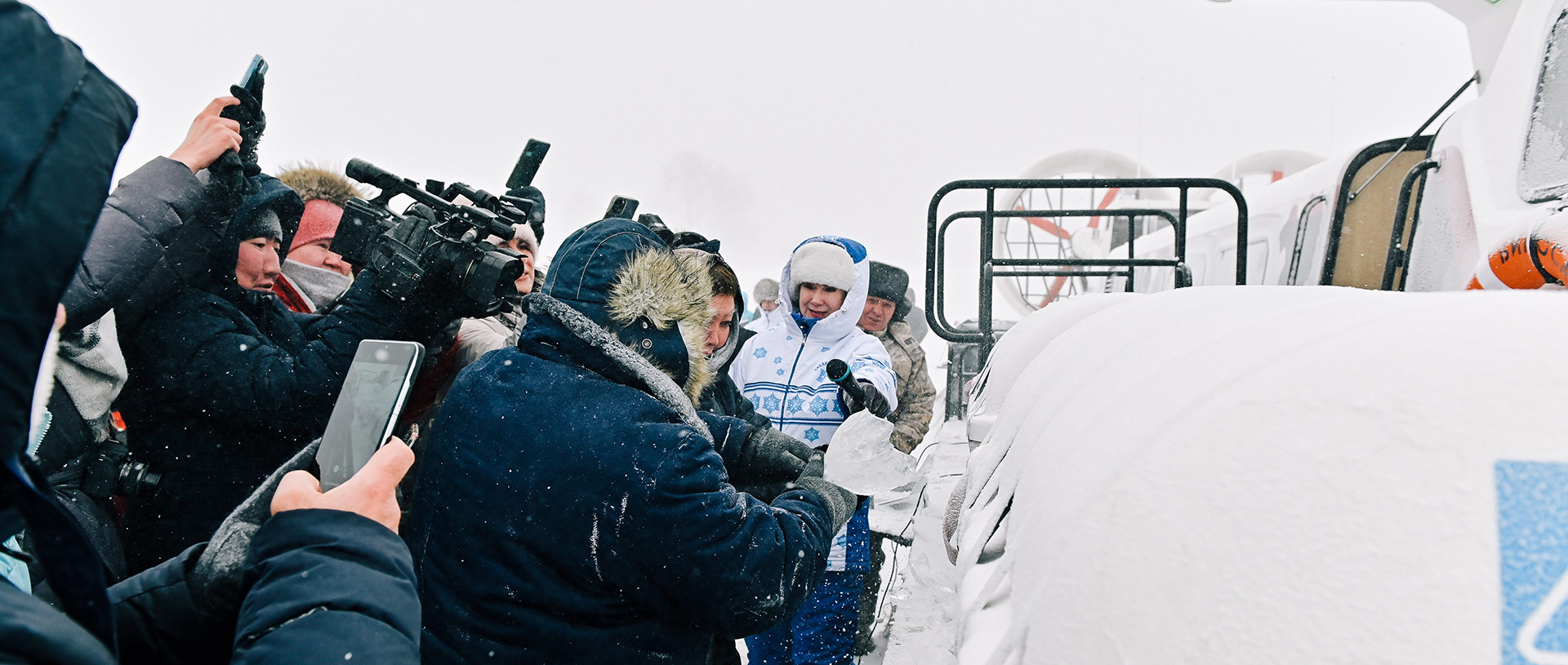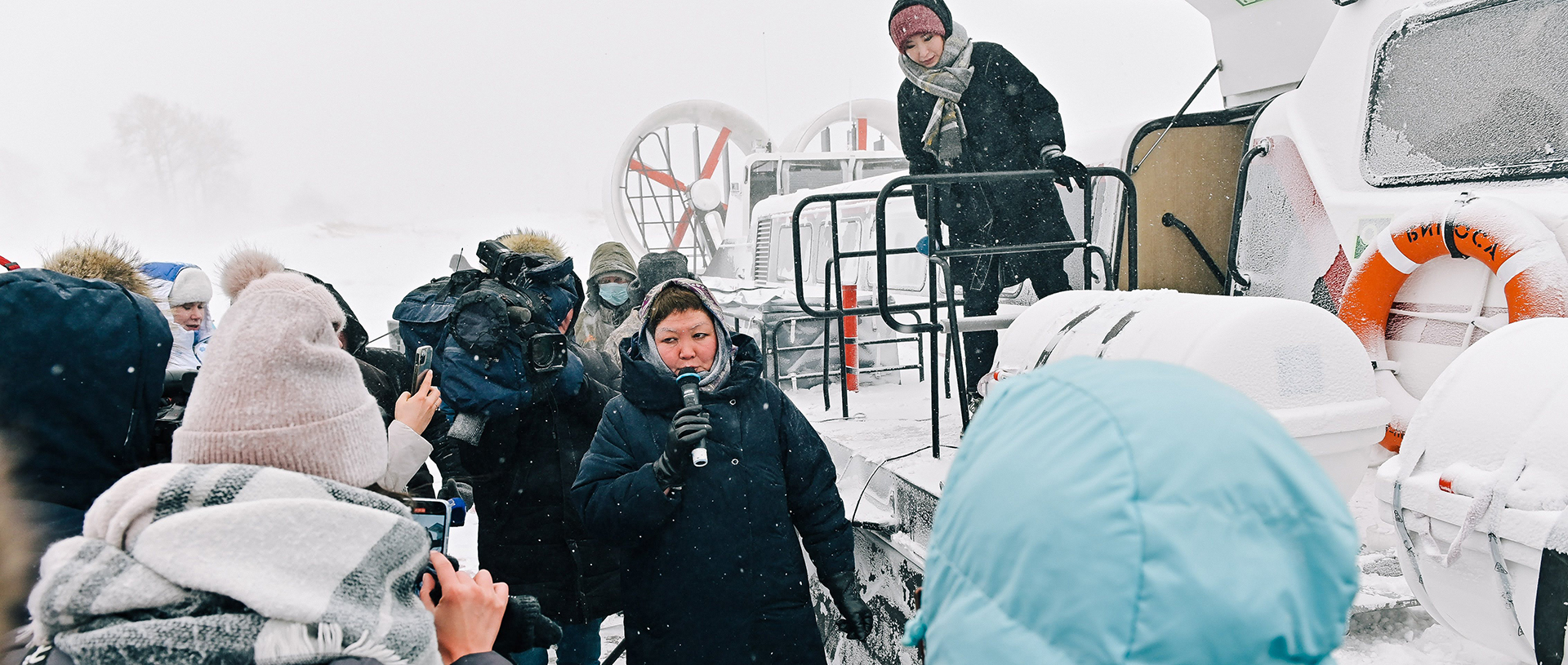 Погода в этот день тоже торжествовала — сильная метель, порывистый ветер и нулевая видимость создавали атмосферу настоящей Сибири. Байкал «окрестил» новое судно своим ледяным дыханием.
