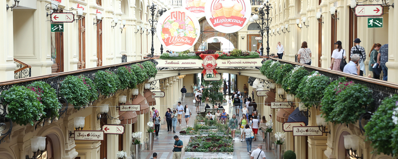 Торговые ряды были переименованы в ГУМ в 1921 г. Он прошел революции и войны, оставаясь торговым центром. В эпоху СССР ГУМ был символом столичного изобилия, местом паломничества гостей столицы. Сегодня это самый престижный торгово-развлекательный центр РФ, в котором бережно сохраняют историческое наследие.