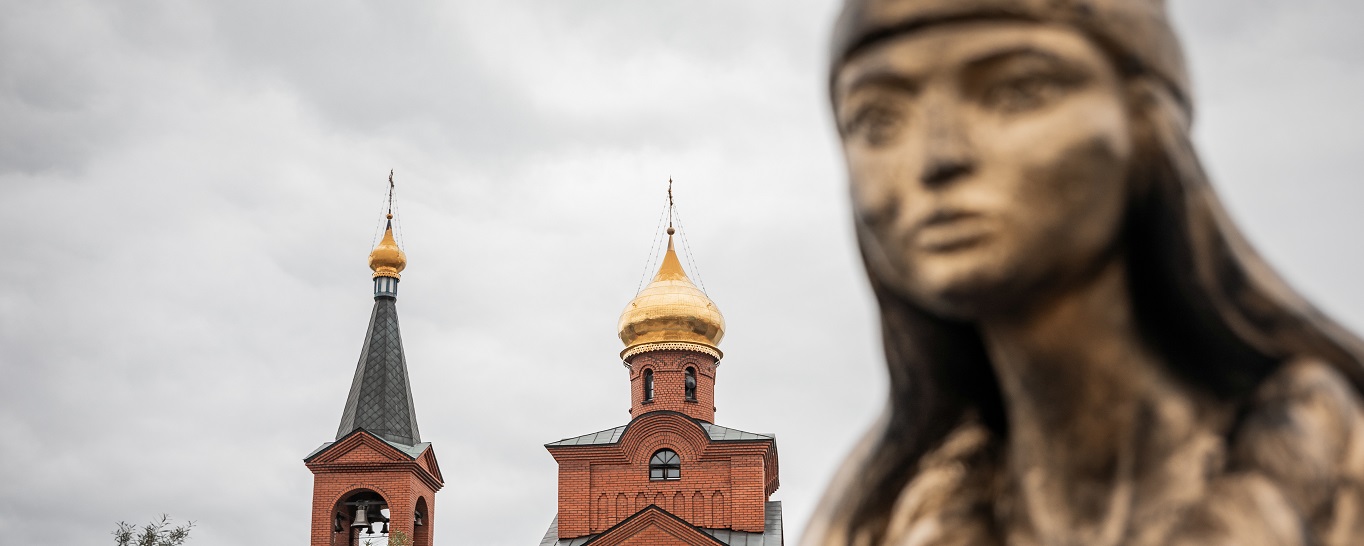 При входе на Набережную площадь стоит часовня, составляющая единый архитектурный ансамбль с церковью. Это памятник-часовня в честь Животворящего Креста Господня, посвященный жертвам политических репрессий. Круглые стены из красного кирпича накрыты куполом с крестом. Внутри можно поставить поминальную свечу.