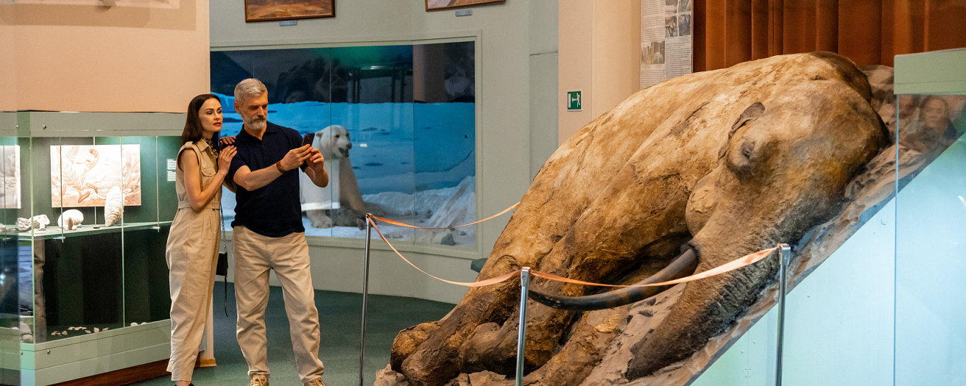Главная гордость и жемчужина музейного фонда – мамонтенок Женя. Он был найден в 2012 г. в таймырской тундре, в толще вечной мерзлоты. Животное, возраст которого составляет около 40-45 тысяч лет, находится в редкой степени сохранности. Находку отправили в Санкт-Петербург для изучения и консервации, а в 2016 г. передали Таймырскому музею.