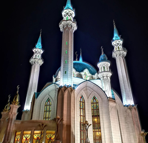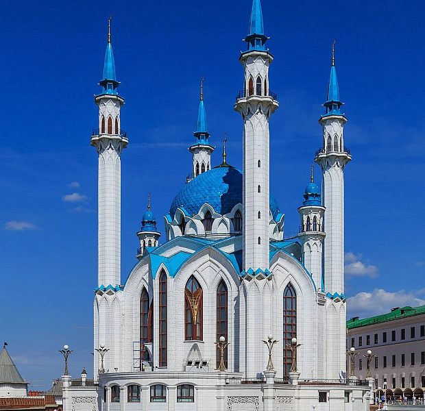 После спуска глаза и ноги ведут в главную мечеть Республики Татарстан – знаменитую Кул-Шариф из белого мрамора и гранита с куполом и минаретами бирюзового цвета, увековечившую древние традиции ислама. Посещение ее бесплатно, причем для любого, независимо от религиозных взглядов. На цокольном этаже мечети находится музей исламской культуры.