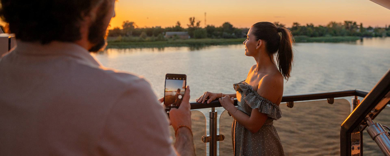 Отправляясь в круиз, вы получаете шикарную возможность сделать насыщенную фотосессию на фоне живописных речных пейзажей или запечатлеть редкие моменты из жизни дикой природы. Романтические фото на фоне речного заката, панорамные снимки города со смотровой площадки во время экскурсии, кадры в стиле урбан в городах стоянки теплохода или в эко-стиле на зеленых стоянках — в круизном путешествии от «ВодоходЪ» найдется масса вариантов для фото-творчества. Теплоход, река, меняющийся ландшафт берега, краски заката и рассвета, уютные зоны на борту, фотогеничные места на берегу, шторм или полный штиль — все это во время круиза превращается в большую фотостудию с постоянно меняющимися декорациями. Сегодня мы направим фокус вашего внимания и вашего фотообъектива на лучшие места на теплоходе и подскажем самые удачные фото-моменты во время речного круиза. Надеемся, что наши советы будут полезны, и в конце сезона вы поделитесь с компанией «ВодоходЪ» своими вдохновляющими круизными фотографиями.
