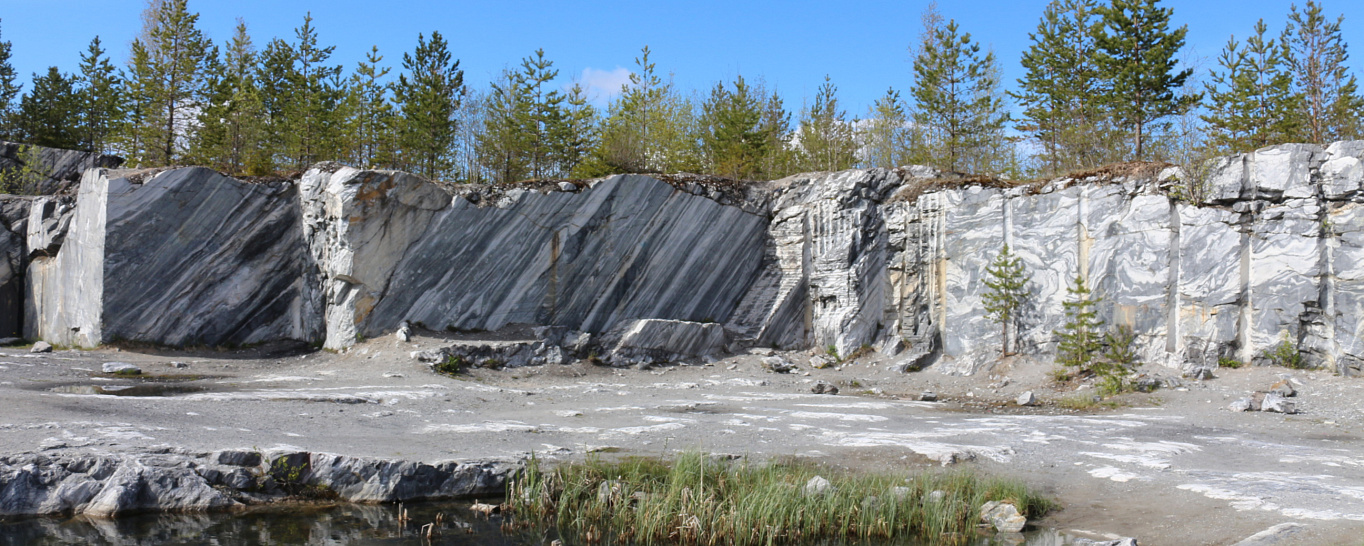 - Знаменитый парк «Рускеала». Горный парк c уникальным 109-ти метровым каньоном, где на протяжении 3-х веков велась добыча мрамора. Впоследствии камень использовали при строительстве Эрмитажа, Казанского и Исаакиевского соборов. Сегодня каньон в Карелии окружают стройные сосны, а за его стенами скрываются таинственные пещеры и гроты. Вода здесь кристально чистая, с изумрудным оттенком благодаря бьющим из-под земли источникам. Желающие могут арендовать лодку, чтобы с воды полюбоваться неповторимой красотой Мраморного озера, исследовать давно заброшенные шахты.