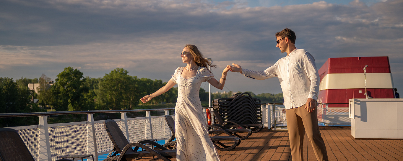 На борту теплохода будет возможность потанцевать, послушать живую музыку и повеселиться с друзьями. Театральные постановки, дискотеки, караоке-вечеринки, игры в Мафию, кинотеатр, изысканный капитанский ужин, мастер-классы и лекции от приглашенных гостей — во время круиза на борту теплохода скучать точно не придется. Отдохните компанией в баре под живую музыку или отправляйтесь на солнечную палубу загорать на шезлонгах, почитайте на свежем воздухе на балконе своей каюты или посмотрите фильм в каюте — выбор за вами.
