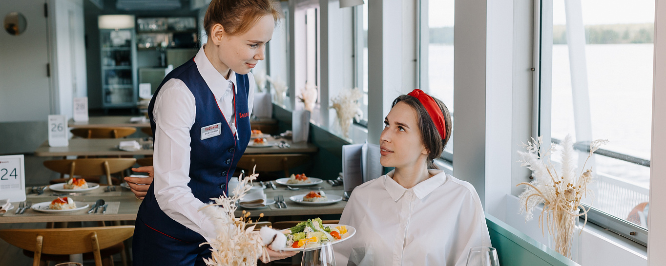 К базовому пакету вы всегда сможете докупить любые услуги на борту, так что обеды или ужины можно приобрести как на весь круиз, так и докупать по мере необходимости. Средняя стоимость комплексного обеда составит 500 руб. на человека.