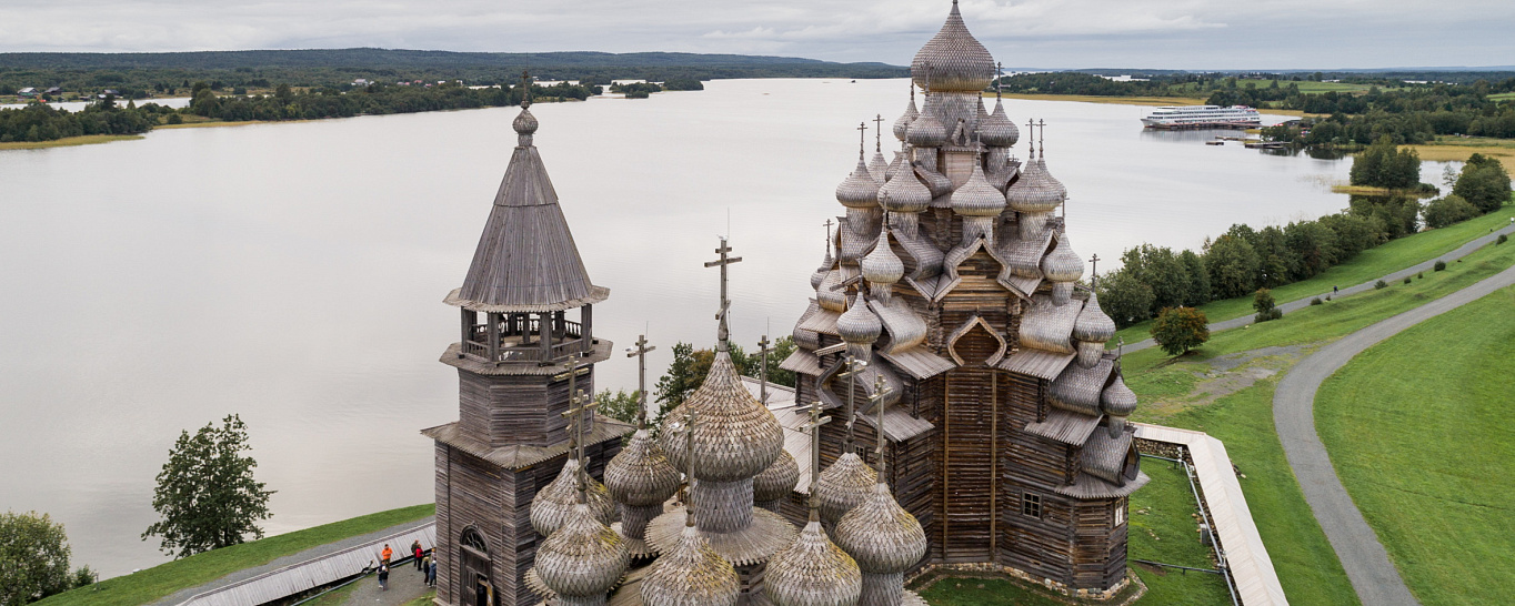 На острове есть значимый объект-достопримечательность — Преображенская церковь постройки 1714 г. Уникальность этого сооружения заключается в том, что оно выстроено без единого гвоздя. Церковь имеет 22 позолоченных купола, отличающих ее от других архитектурных объектов острова. На Кижи можно увидеть: