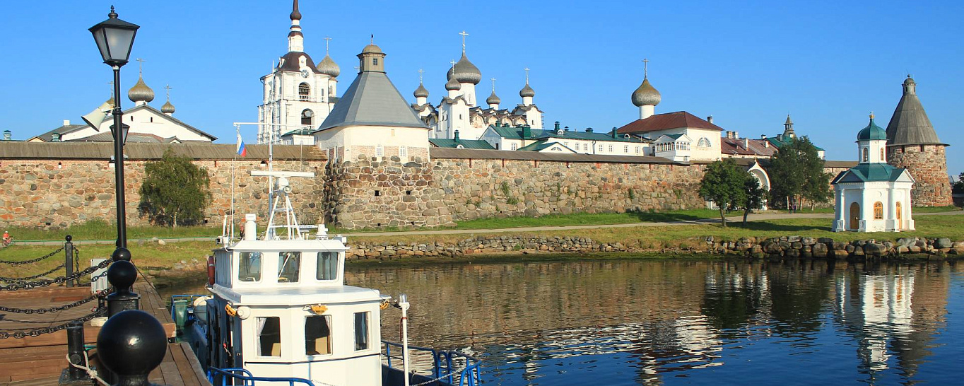 На Соловецких островах т/х «Александр Пушкин» стоит два дня, что позволяет в размеренном темпе познакомиться с достопримечательностями островов и проникнуться атмосферой, которую создают уникальные пейзажи строгой и величественной северной природы в сочетание с возвышающимися маковками православных Святынь.