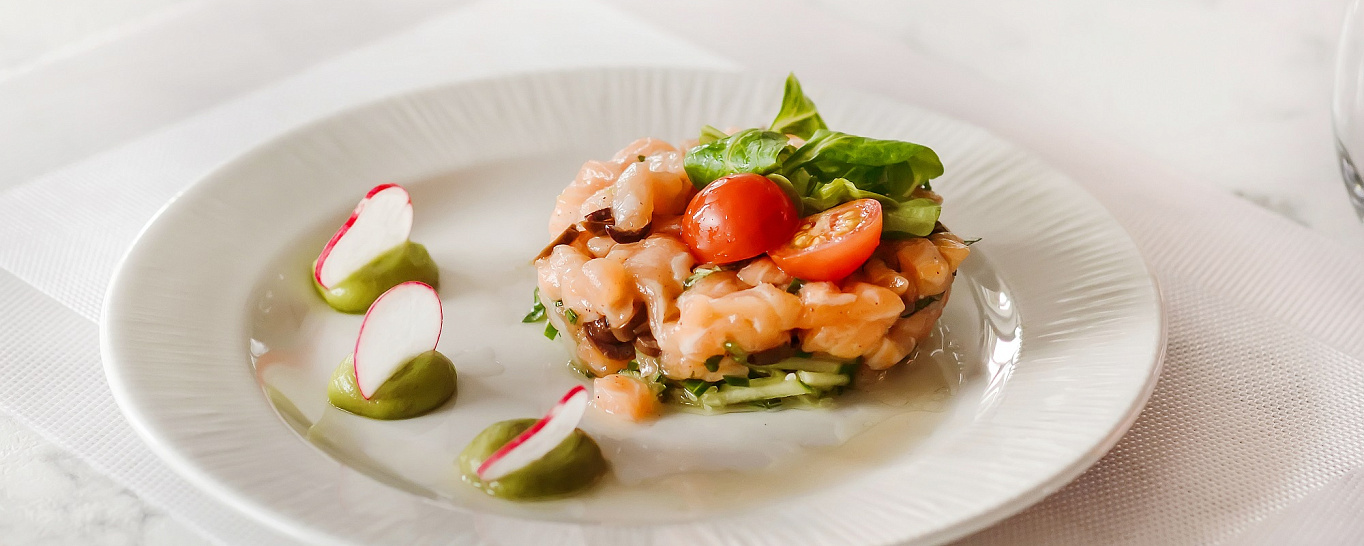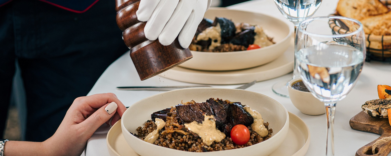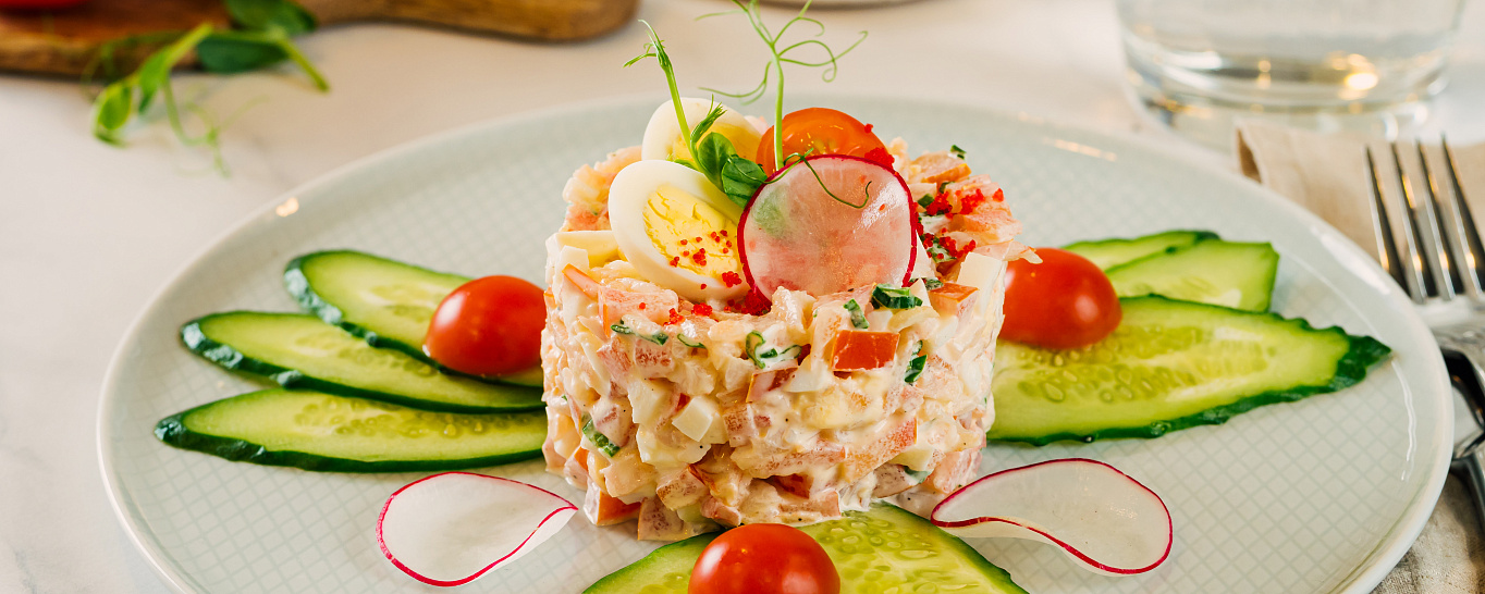 На ужин гостям были предложены изысканные закуски, салаты, горячие блюда и десерты: вкуснейшие сыры, в том числе горгонзола и пармезан, нежное филе лосося с запеченными цуккини и молодым картофелем под сливочным соусом, томленные говяжьи щечки с гречкой под пикантным грибным соусом, фирменный десерт компании «ВодоходЪ» «Волжская галька» и много других блюд из нового меню теплохода «Мустай Карим». Для самых маленьких путешественников было разработано детское меню: супчики, легкие салатики, десерты, напитки и любимые всеми детьми пицца и паста. Праздничная атмосфера ужина продолжилась в баре «Башкирия» под любимые хиты и мелодии.