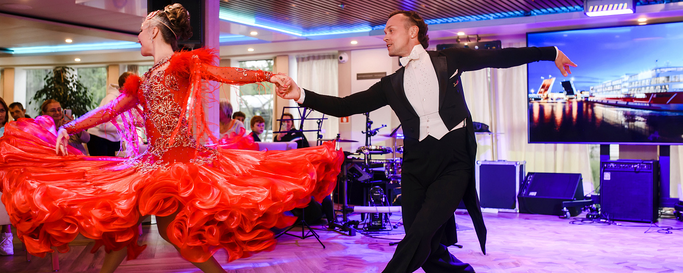 Сразу после заселения в комфортабельные каюты гости отправились на приветственный коктейль в бар «Панорама». В качестве закуски гостям подавали комплимент от шеф-повара: дыню с пармской ветчиной. Праздничную атмосферу придавали живая музыка и выступление артистов.