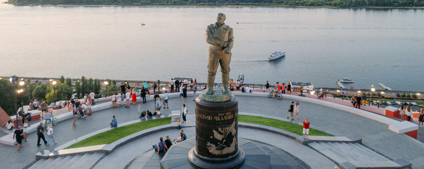 Интересно, что место для монумента Чкалов выбирал сам, правда, для другого памятника — Максиму Горькому. Но по иронии судьбы все сложилось иначе. Авторами памятника летчику стали Исаак Менделевич и архитекторы Иван Таранов и Виктор Андреев. Статую из бронзы отлили на заводе «Монументскульптура» в Ленинграде. Памятник легендарному летчику-испытателю был открыт 15 декабря 1940 года, в день второй годовщины его гибели. А в 1943 году было принято решение о строительстве монументальной лестницы, соединяющей площадь Минина и Пожарского с Нижне-Волжской набережной.