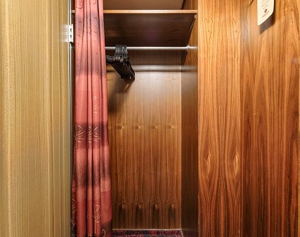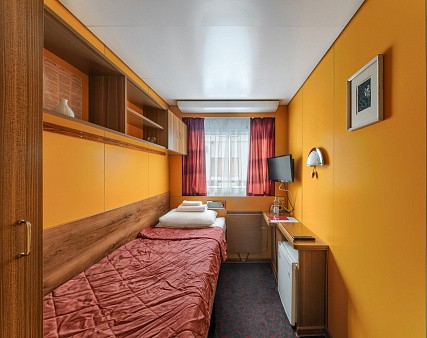 В каюте: одно спальное место, шкаф для одежды, холодильник, телевизор, фен, радио, душ, санузел, кондиционер, обзорное окно, электророзетка на 220V.