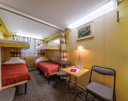 Возможна продажа каюты в трех- и двухместном размещении по стоимости трехместной двухъярусной и двухместной одноярусной каюты.