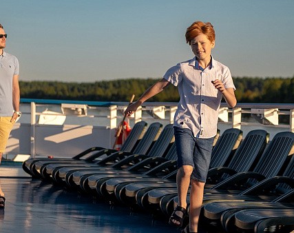 - Дети от 2 до 5 лет (включительно) принимаются бесплатно без предоставления места (при отсутствии в каюте свободных спальных мест) и экскурсионного обслуживания, но с условием обязательной оплаты детского питания.