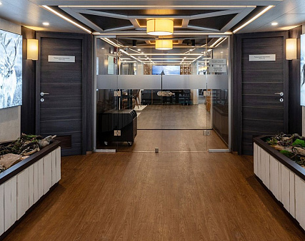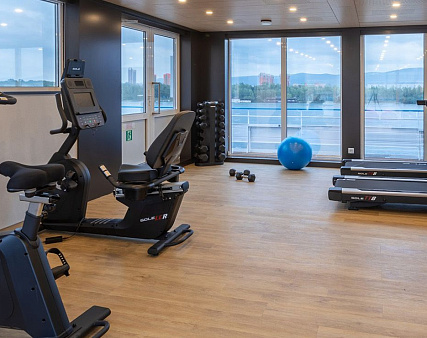 В каюте: односпальная кровать, шкаф для одежды, радио, кондиционер, телевизор, холодильник, фен, сейф, душ, санузел, обзорное окно, электророзетка на 220V.