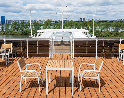 Площадь — 17,7 м2. Однокомнатная каюта с удобствами (душ, санузел, кондиционер) рассчитана на размещение до трех человек.