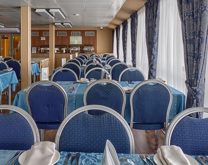 - Завтрак — шведский стол или заказная система с элементами шведского стола, фиксированная рассадка. Включённые напитки (без ограничения): вода, сок, чай, кофе. В рейсах до 4-х дней при ранней высадке в день прибытия завтрак континентальный;