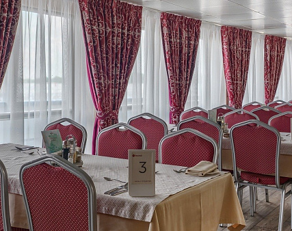 - Трехразовое питание. В день начала и день окончания круиза питание предоставляется в зависимости от времени посадки и высадки; в случае, если время проведения экскурсии совпадает со временем приема пищи, гостю предоставляется питание в ресторане/кафе города или выдается «ланч-бокс»
