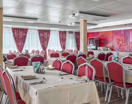 - Завтрак — шведский стол или заказная система с элементами шведского стола, фиксированная рассадка. Включённые напитки (без ограничения): вода, сок, чай, кофе. В рейсах до 4-х дней при ранней высадке в день прибытия завтрак континентальный;