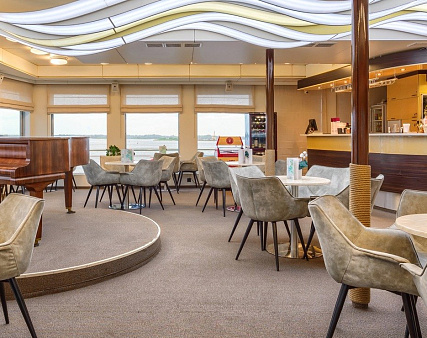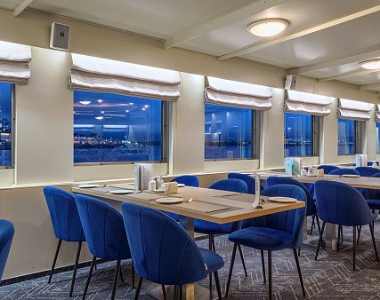- Обед – заказная система питания (выбор блюд со 2-го дня круиза), фиксированная рассадка. Включённые напитки (без ограничения): вода, чай, кофе, морс.