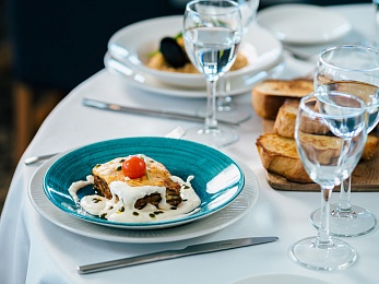 - Ужин – заказная система питания (выбор блюд со 2-го дня круиза), фиксированная рассадка. Включённые напитки (без ограничения): вода, чай, кофе. На выбор: вино красное / белое / игристое (1 бокал, 125 мл) / водка (1 рюмка, 50 мл) / пиво (1 бокал, 300 мл) / домашний морс (1 бокал, 200 мл). По запросу гостя: кисломолочный напиток (1 стакан, 200 мл).