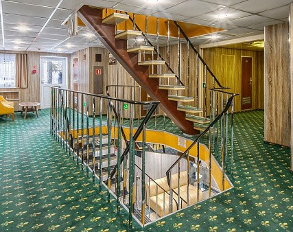 В каюте: одно спальное место, шкаф для одежды, радио, телевизор, душ, санузел, холодильник, кондиционер, обзорное окно, электророзетка на 220V, фен.