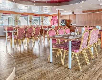 Первая услуга по питанию - завтрак. Каждый день на борту теплохода вас будет ждать развлекательная программа.