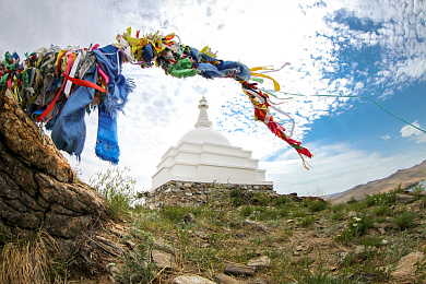 По пути следования мы увидим мыс «Кобылья голова» и залив Хул. Остров Огой – самый большой в проливе между Ольхоном и материком. Культовой достопримечательностью острова стала буддийская Ступа Просветления, возведенная в 2005 году и посвященная Дакине Трома Нагмо (богине, обладающей тайными знаниями). Белоснежное трехступенчатое сооружение с куполом и шпилем стало новым символом острова. Внутри помещены реликвии: буддийские манускрипты общим весом 750 кг, различные мантры, священные частички тела Будды Шакьямуни, минералы и морские ракушки, земли святых мест, вода из всех океанов, холодное оружие и статуэтка Дакини Тромо Нагмо. Ступа Просветления считается главной из восьми видов ступ в буддизме, поскольку символизирует основную цель этой религии – просветление.