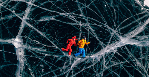 Продвигаясь на СВП в сторону Иркутского берега, мы остановимся в уникальной точке Байкала - месте, которое расположено над самой глубокой точкой озера в 1642 м, что сопоставимо с высотой пяти Эйфелевых башен. Вода здесь настолько чистая, что видимость сквозь лед составляет 40 метров в глубину.