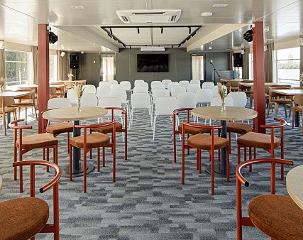 - Обед – заказная система питания (выбор блюд со 2-го дня круиза), фиксированная рассадка. Включённые напитки (без ограничения): вода, чай, кофе, морс.