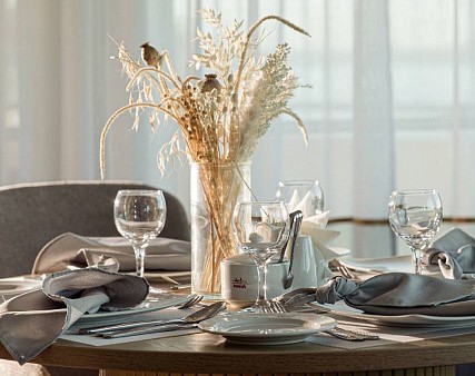 - Ужин – заказная система питания (выбор блюд со 2-го дня круиза), фиксированная рассадка. Включённые напитки (без ограничения): вода, чай, кофе. На выбор: вино красное / белое / игристое (1 бокал, 125 мл) / водка (1 рюмка, 50 мл) / пиво (1 бокал, 300 мл) / домашний морс (1 бокал, 200 мл). По запросу гостя: кисломолочный напиток (1 стакан, 200 мл).