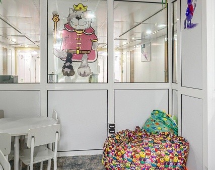 Комфортабельная гостиная с современным интерьером, мягкая мебель (два кресла, раскладывающийся на двух человек диван), журнальный столик, шкаф-стенка, кондиционер, радио, телевизор, холодильник, фен, сейф, два обзорных окна, электророзетка на 220V.