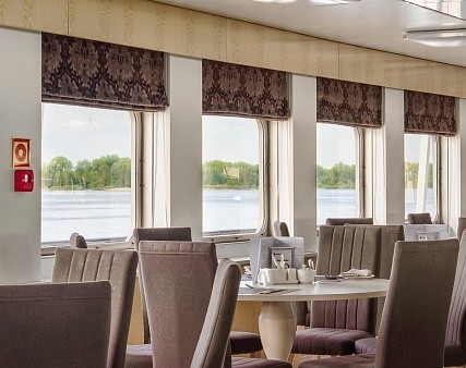 - Полный пансион (завтрак + обед + ужин): завтрак — шведский стол или заказная система с элементами шведского стола, фиксированная рассадка. Включённые напитки (без ограничения): вода*, сок, чай, кофе; обед — заказная система питания (выбор блюд со 2-го дня круиза), фиксированная рассадка. Включённые напитки (без ограничения): вода*, чай, кофе, морс (порционно); ужин — заказная система питания (выбор блюд со 2-го дня круиза), фиксированная рассадка. Включённые напитки (без ограничения): вода*, чай, кофе, кисломолочный продукт (1 стакан, 200 мл); порционно на выбор - вино красное / белое / игристое (1 бокал, 125 мл) / водка (1 рюмка, 50 мл) / пиво (1 бокал, 300 мл) / домашний морс (1 бокал, 200 мл).