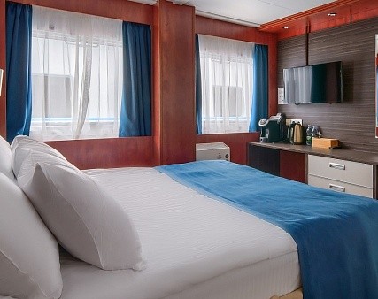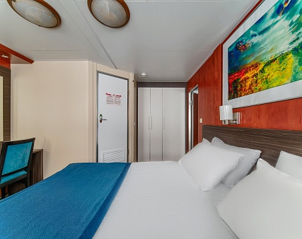 В каютах 347-350 (средняя палуба), 403, 405-409, 412, 414, 419-422 (шлюпочная палуба) — двуспальная кровать размером 160х200 см.