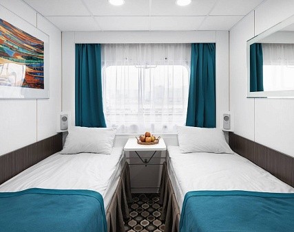 В каютах 201-224 (главная палуба) — две односпальные кровати размером 80х190 см