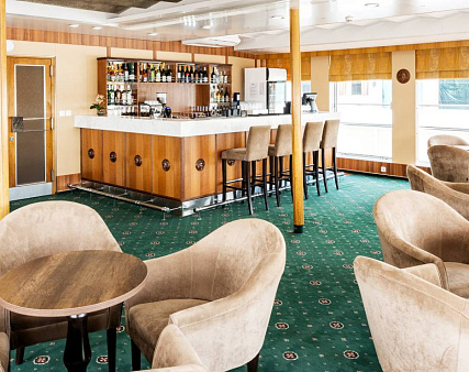 - Полупансион (завтрак + ужин): завтрак — шведский стол или заказная система с элементами шведского стола, фиксированная рассадка. Включённые напитки (без ограничения): вода*, сок, чай, кофе; ужин — заказная система питания (выбор блюд со 2-го дня круиза), фиксированная рассадка. Включённые напитки (без ограничения): вода*, чай, кофе, кисломолочный продукт (1 стакан, 200 мл); порционно на выбор - вино красное / белое / игристое (1 бокал, 125 мл) / водка (1 рюмка, 50 мл) / пиво (1 бокал, 300 мл) / домашний морс (1 бокал, 200 мл).