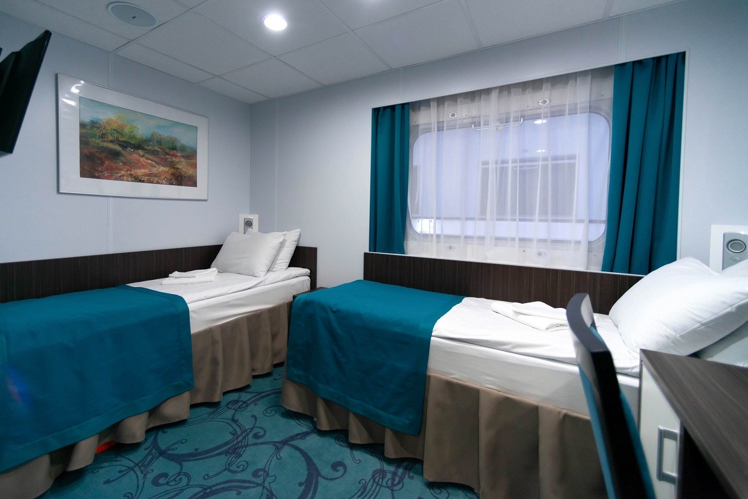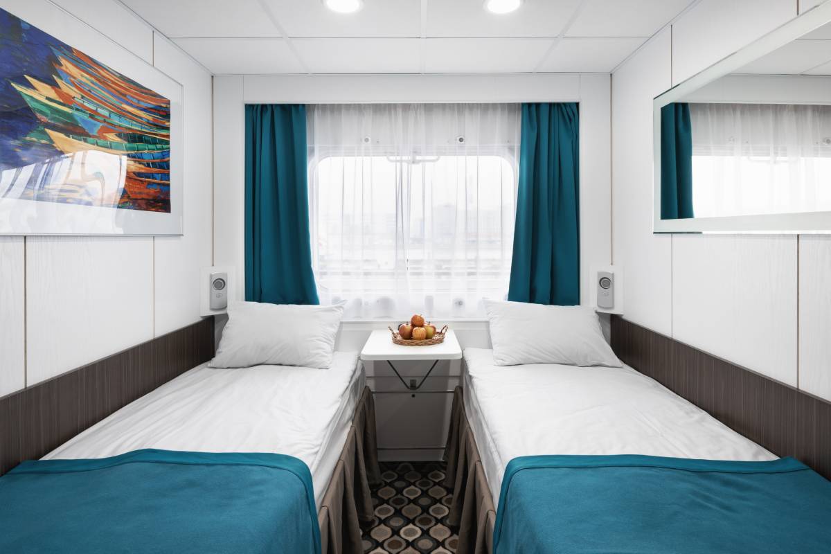 В каютах 201-224 (главная палуба) — две односпальные кровати размером 80х190 см