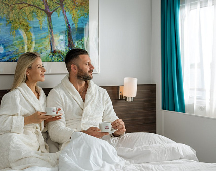 - Полупансион (завтрак + ужин): завтрак — шведский стол или заказная система с элементами шведского стола, фиксированная рассадка. Включённые напитки (без ограничения): вода*, сок, чай, кофе; ужин — заказная система питания (выбор блюд со 2-го дня круиза), фиксированная рассадка. Включённые напитки (без ограничения): вода*, чай, кофе, кисломолочный продукт (1 стакан, 200 мл); порционно на выбор - вино красное / белое / игристое (1 бокал, 125 мл) / водка (1 рюмка, 50 мл) / пиво (1 бокал, 300 мл) / домашний морс (1 бокал, 200 мл).