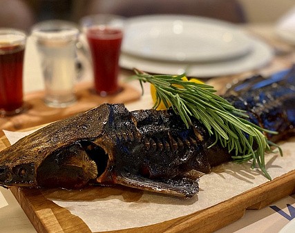- Ужин – заказная система с включенными напитками (вода, чай, кофе, домашний морс, пиво) без ограничения и сибирскими настойками на аперитив (2 шота), фиксированная рассадка;
