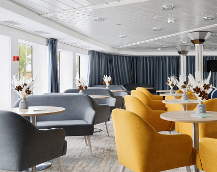 - Обед – заказная система питания (выбор блюд со 2-го дня круиза), фиксированная рассадка. Включённые напитки (без ограничения): вода, чай, кофе, морс.