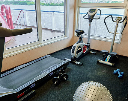 В каюте: односпальная кровать и диван, прикроватные тумбы, туалетный столик, стул, шкаф, телевизор, холодильник, радио, телефон, обзорное окно, душ, санузел, кондиционер, фен, сейф, электророзетка на 220V.