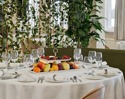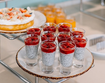 - Завтрак — шведский стол, фиксированная рассадка. Включённые напитки (без ограничения): вода, чай, кофе, сок, домашний морс.