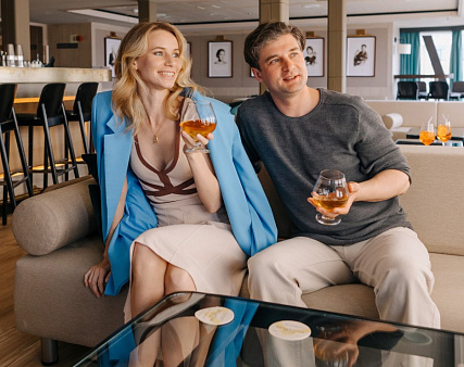 • Ужин — заказная система питания (выбор блюд со 2-го дня круиза), фиксированная рассадка. Включённые напитки (без ограничения): вода, чай, кофе, домашний морс. На выбор: вино красное / белое / игристое (1 бокал, 125 мл) / водка (1 рюмка 50 мл) / пиво (1 бокал, 300 мл).