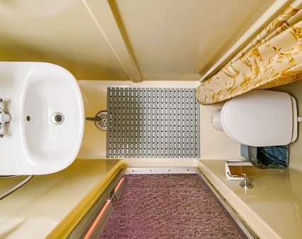 В каюте: четыре спальных места (два внизу, два вторым ярусом), шкаф для одежды, радио, душ, санузел, кондиционер, два иллюминатора, электророзетка на 220V. Площадь каюты - 12,81 кв.м.