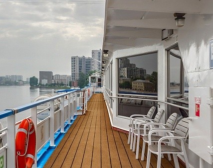 В каюте: одно спальное место, шкаф для одежды, радио, душ, санузел, кондиционер, обзорное окно, электророзетка на 220V. Площадь кают: №437 - №440 - 6,6 кв.м., №441 - №444 - 7,83 кв.м.