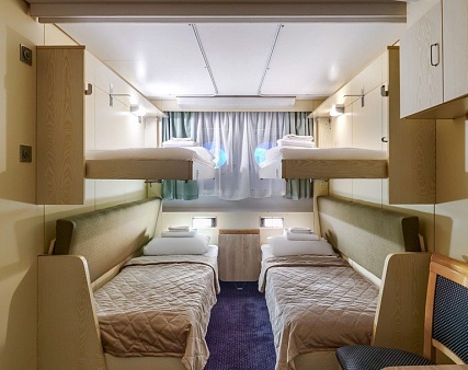Возможна продажа каюты в двухместном одноярусном размещении (по стоимости 2-местной одноярусной каюты) и в трёхместном двухъярусном размещении (по стоимости 3-местной двухъярусной каюты).
