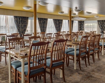 - Завтрак — шведский стол или заказная система с элементами шведского стола, фиксированная рассадка. Включённые напитки (без ограничения): вода, сок, чай, кофе. В рейсах до 4-х дней при ранней высадке в день прибытия завтрак континентальный;