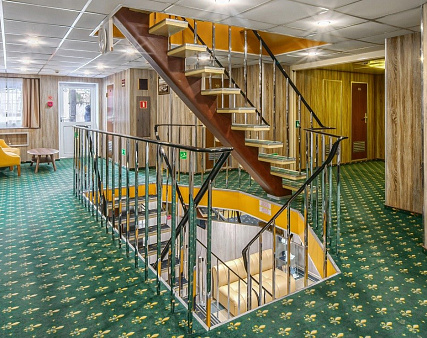 В каюте: одно спальное место, шкаф для одежды, радио, телевизор, душ, санузел, холодильник, кондиционер, обзорное окно, электророзетка на 220V, фен.