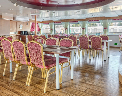 - Завтрак — шведский стол или заказная система с элементами шведского стола, фиксированная рассадка. Включённые напитки (без ограничения): вода, сок, чай, кофе. В рейсах до 4-х дней при ранней высадке в день прибытия завтрак континентальный;