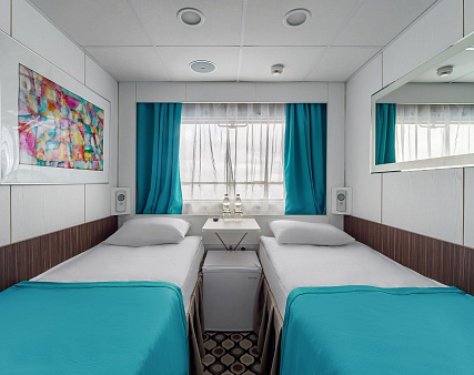 Односпальные кровати размером 80х190 см, площадь каюты 13,2 м2