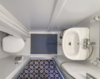 В каюте: одно спальное место, шкаф для одежды, радио, телевизор, холодильник, сейф, фен, душ, санузел, кондиционер, обзорное окно, электророзетка на 220V.